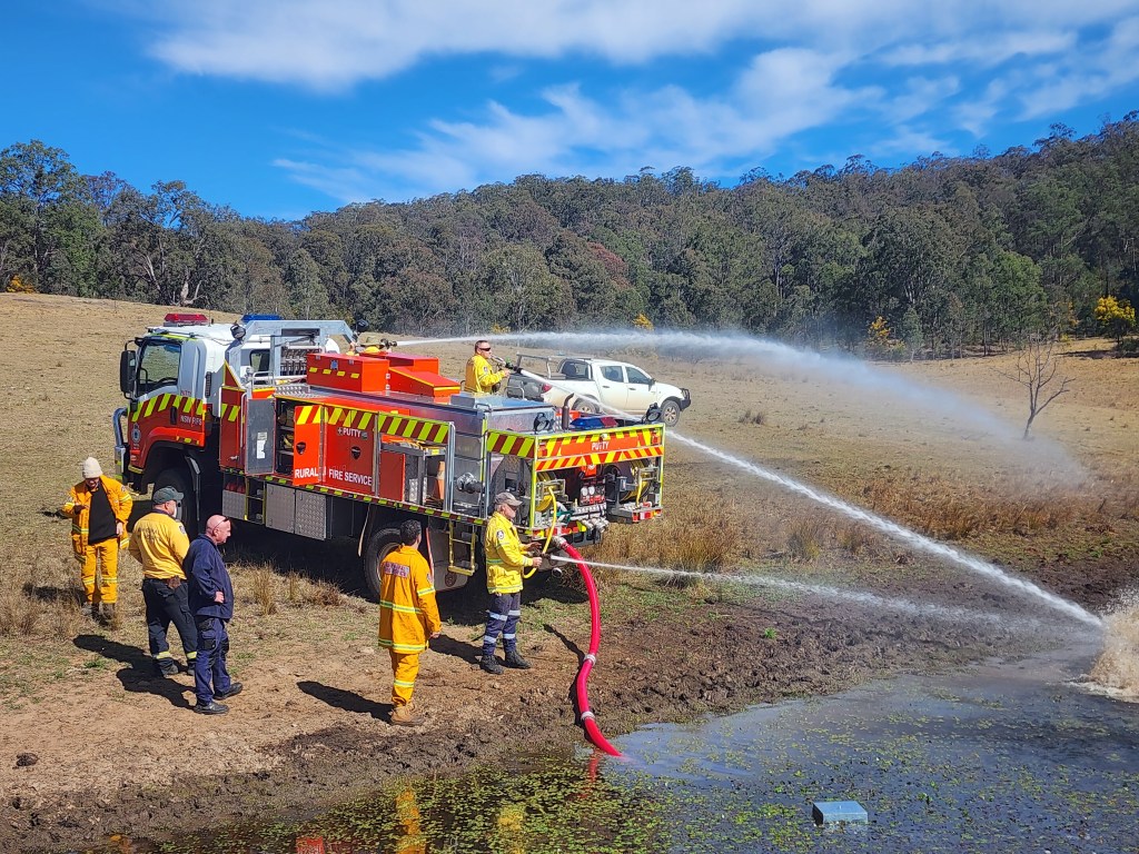 attaching water hoses to the truck, connecting to the bore at the station, filling the water tank on the truck and drafting water from a water source such as a dam. While at the dam they were shown where all the spray points on the truck were located.